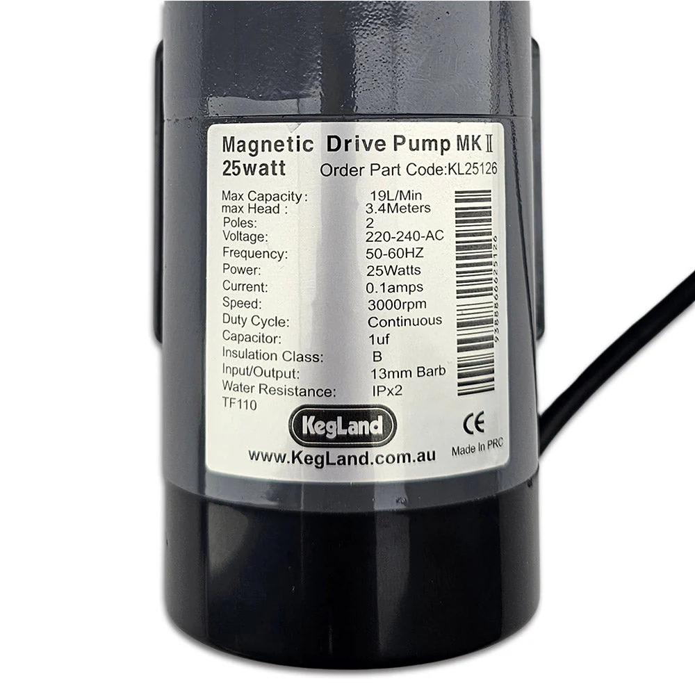 Upgrade your 65L BrewZilla Gen 4 with the all new barbed magnetic driven pump. This pump comes standard with the 100L BrewZilla Gen 4.