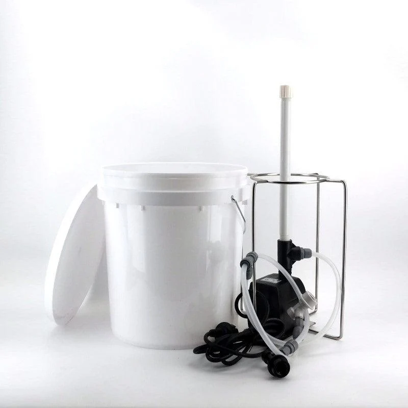 This system includes a 2000liter per hour pump, the 15L bucket, a powerful jet nozzle, 3/8 EVABarrier tubing, a duotight tee piece, a grey and black ball lock disconnect and the stainless stand.Ā Some other keg washers have the ball lock disconnects and tee piece sold separately but this is included in the kit.